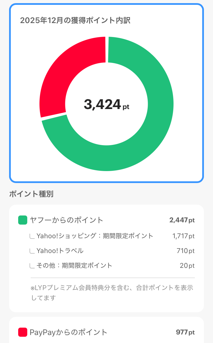 PayPayポイントの内訳は、以下になります。