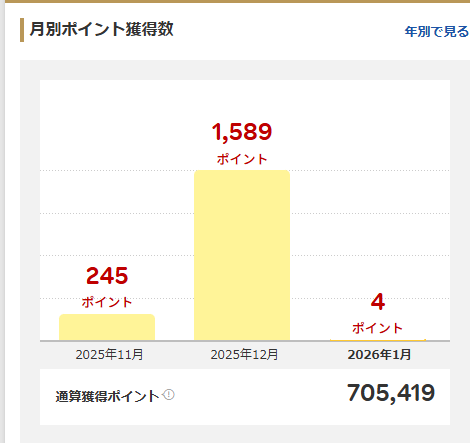 2025年12月の1ヵ月間に、筆者がポイ活で獲得したポイント数総額は、以下のとおりでした。