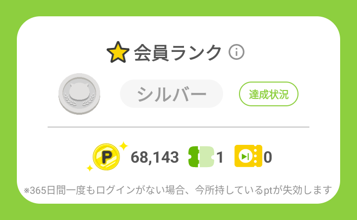 | 64,824ポイント (6,482.4円) | → | 68,143ポイント (+3,219pt) (6,814.3円(+321.9円) |